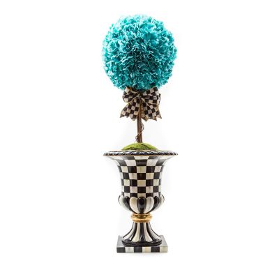 Add instant MacKenzie-Childs style with our Large Aqua Topiary Drop In. Resembling a lush hydrangea, this everlasting floral accent is decorated with a Courtly Check® bow and set in a Courtly Check ceramic base. Display as-is or drop it into the Courtly Stripe Tabletop Urn or the Courtly Check Pedestal Tabletop Urn (sold separately) for an elevated presentation.