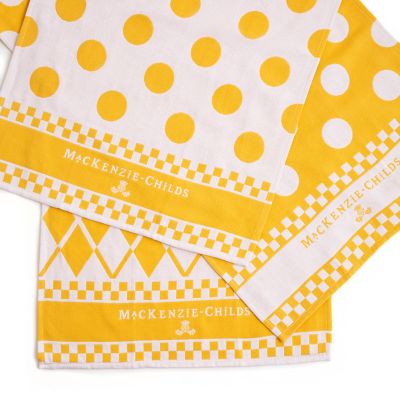Our set of three Yellow Argyle Dish Towels are fun and functional. Featuring a mix of cheerful yellow and white patterns, as well as our fetching logo, they’ll look lovely hanging from a hook in your kitchen (who could bear to keep them stashed away in a drawer?)