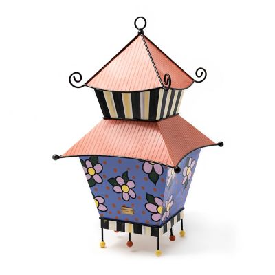 The Avant Garden Bird House is home tweet home to birds of a feather. Made of metal and decorated with hand-painted blue florals, it’s accented with a red pinstripe roof, accented with Courtly Stripe.