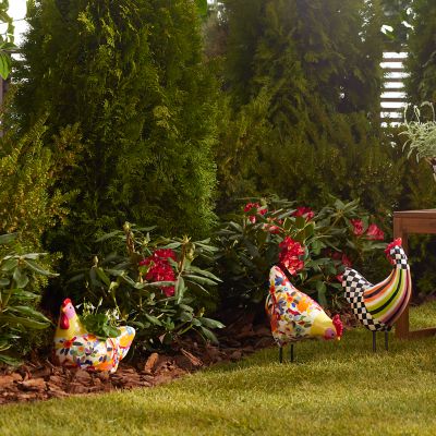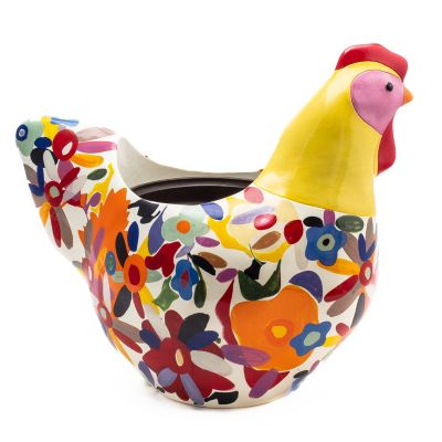 Display your plants with MacKenzie-Childs style in our Floral Avant Garden Chicken Planter. This weather-resistant resin planter, decorated with florals, includes an accompanying plastic insert for a plant.