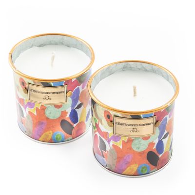Keep the bugs at bay with our set of two Small Avant Garden Citronella Candles. The galvanized metal containers, decorated with our Avant Garden pattern, are filled with a blend of paraffin and citronella.