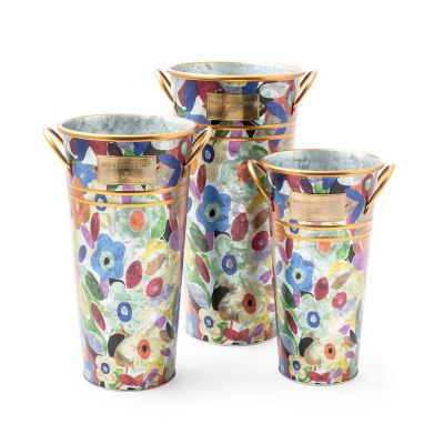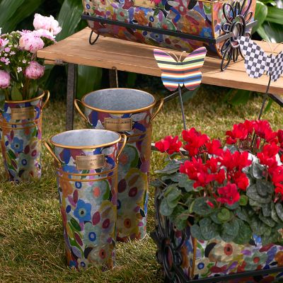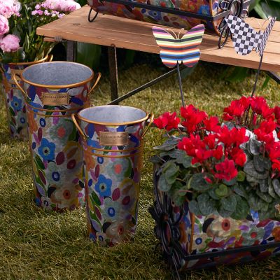 Blooms will be even more beautiful in our set of three Avant Garden Flower Buckets. These galvanized metal buckets, decorated with Avant Garden pattern, are equally perfect for fresh or everlasting flowers.