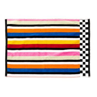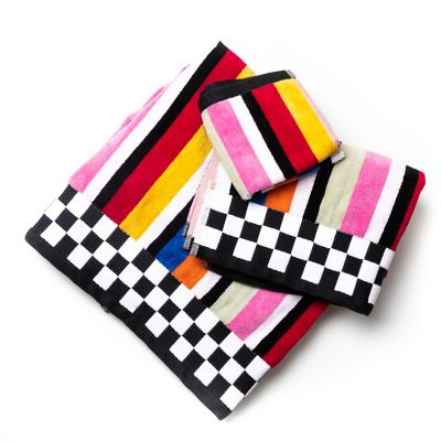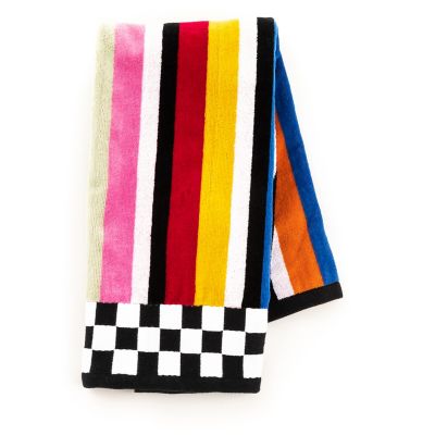 Colorful stripes play nicely together on our Avant Garden Hand Towel. A bold statement for your powder room or master bath, these velour and terry cotton towels feature a checked border, adding a pop of color while still working with bathroom basics like black and white.