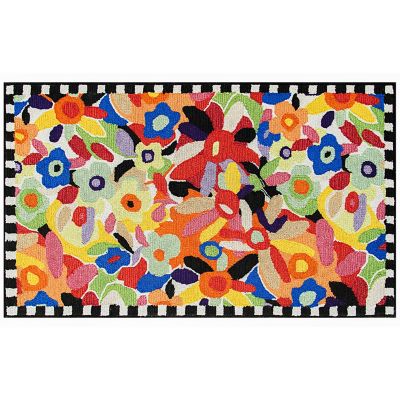 Why trade durability for fashion? The 2’3″ x 3’9″ Avant Garden Indoor/Outdoor Rug offers both. Made of hand-tufted polyester, it features colorful blooms with a striped black and white border. It can be used indoors or outdoors in a shaded or covered area with limited direct exposure to sunlight. It’s the perfect complement to our collection of Avant Garden Outdoor Furniture.