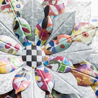 Our Large Avant Garden Outdoor Wallflower is in full bloom anywhere you place it. Layers of galvanized metal fashioned into flower petals, including some decorated with our Avant Garden pattern, surround a Courtly Check center. Combine it with the Small Avant Garden Outdoor Wallflower to add even more wow.