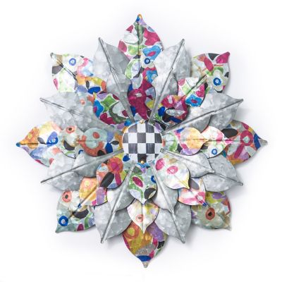 Our Small Avant Garden Outdoor Wallflower is in full bloom anywhere you place it. Layers of galvanized metal fashioned into flower petals, including some decorated with our Avant Garden pattern, surround a Courtly Check center. Combine it with the Large Avant Garden Outdoor Wallflower to add even more wow.