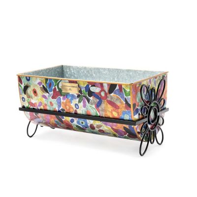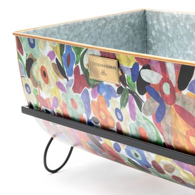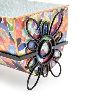 Present your prized petunias in our Large Avant Garden Planter. Made of galvanized metal, it’s decorated with our Avant Garden pattern and has a painted copper-finish handle and spout. It sits in an iron frame accented with flowers on either end. So pretty you’ll want to use it year-round, you can also fill it with flip-flops, yarn, or magazines.