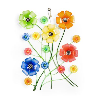 The Avant Garden Wreath says summer has arrived. Made of metal, it features hand-painted Capiz flowers with checked centers. Hang this in a protected location.