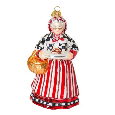 Add to the memories year after year with our collection of beautiful glass ornaments that are mouth-blown and hand-painted in Eastern Europe by some of the world’s most talented glass artisans. This glass ornament features Mrs. Santa, accented with Courtly Check®, with a tray of holiday treats. It’s presented in a keepsake gift/storage box.