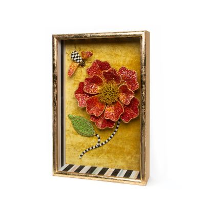 Paintings and prints are pretty enough, but sometimes it takes a three-dimensional piece to bring your art collection to life. The Beaded Peony Shadow Box features a beaded wire peony and a bumblebee accented with beads set on a velvet backdrop and outlined with Courtly Stripe. Hang to bloom on a gallery wall or alongside the Beaded Tulip Shadow Box to wake up a hallway.