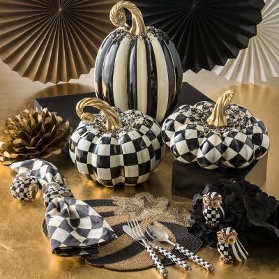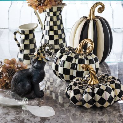 Take your pick from our most unusual pumpkin patch. The Medium Beaded Stripe Pumpkin features hand-painted Courtly Stripes topped with a sprinkling of shimmering beads and sequins. Adding a touch of glitz is a twisted gold-leafed stem, making this gorgeous gourd a seasonal staple right through Thanksgiving.