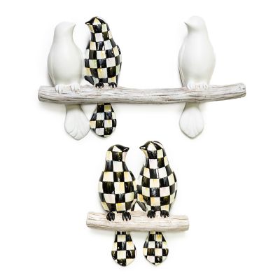 Add something unexpected to your gallery wall with our Bird Wall Art set, featuring the Duo and Trio of hand-painted resin Courtly birds of a feather, gathering together, on a birchlike branch.