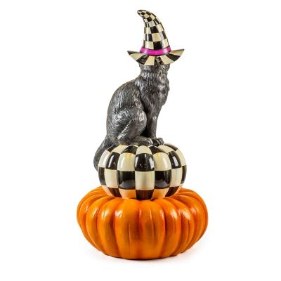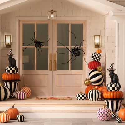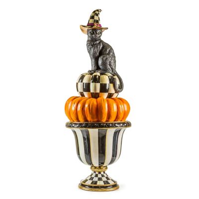 Set a spook-tacular scene with this topiary, featuring our weather-resistant Happy Jack Cat atop a stylish stack of pumpkins. It can sit on a flat surface or be placed in our Courtly Check® Pedestal Urn and our Courtly Stripe Urn.
