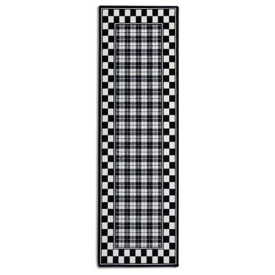 Celebrate our Scottish roots with the wool blend 2’6″ × 8′ Black and White Tartan Runner. It’s produced using the Axminister method, which is known for a superior durability that comes from interweaving the pile and backing. Woven in Scotland, the pattern is a tartan in black and white, surrounded with a checked border.