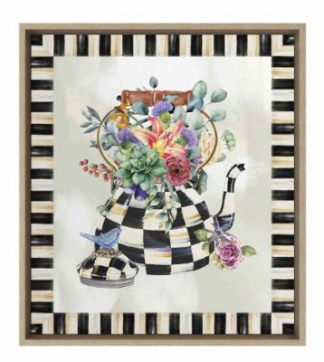 Add some wow to your walls with the Blooming Kettle Wall Art. This giclée image of our Courtly Check® Tea Kettle, filled to the brim with blooms and trimmed with Courtly Stripe, is created with high-quality inkjet printing on stretched canvas that’s embellished with hand-painting and mounted in a whitewash faux wood frame. Pair it with the Vegetable Bouquet Wall Art to create a display that’s always in check.