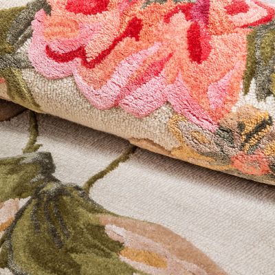 Put on a floral floor show in pinks and neutrals with this 8′ x 10′ rug made of New Zealand wool with viscose that’s been hooked and sheared for delightful dimension.