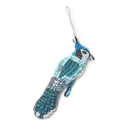 Make the tree merry with this beaded blue jay ornament, featuring glass beads on the front and Courtly Check® fabric on the back.