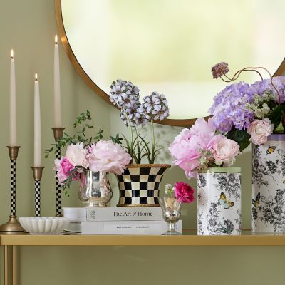 Spring ahead and top the table with this potted hyacinth made of metal that’s set in a hand-painted Courtly Check® base, trimmed with lavender and gold accents.