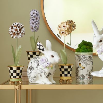 Spring ahead with this everlasting arrangement of metal hyacinths set in a hand-painted Courtly Check® base that’s trimmed with goldleaf roping.