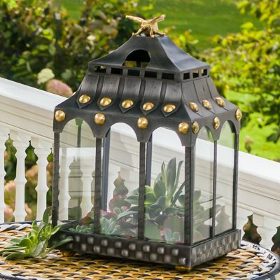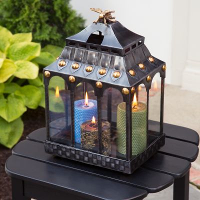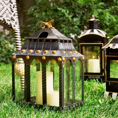 Keep the patio party buzzing with the gentle illumination of our Busy Bee Lantern. Crafted of iron in an English-garden twist on a classic pagoda shape with a subtly stamped Courtly Check® pattern, brass button accents, and a hovering honeybee that’s all sweet and no sting. Just add your favorite candles—we’re partial to our pillars.