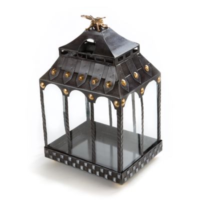 Keep the patio party buzzing with the gentle illumination of our Busy Bee Lantern. Crafted of iron in an English-garden twist on a classic pagoda shape with a subtly stamped Courtly Check® pattern, brass button accents, and a hovering honeybee that’s all sweet and no sting. Just add your favorite candles—we’re partial to our pillars.
