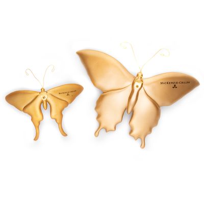 Let your walls take a flight of fancy with the Blue Butterfly Duo. This set of two butterflies, topped with wire antennae, feature floral toile and check patterns. Hang them on the wall at different angles, thanks to adjustable metal hangers on the backs.