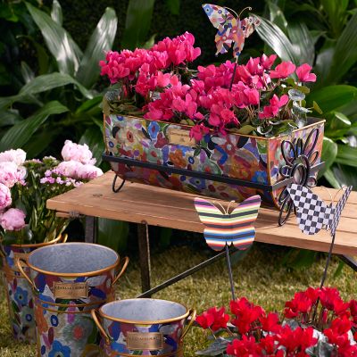 Add some playful interest to the garden with the set of three Butterfly Garden Stakes. Made of metal, these hand-painted accents insert into the ground or can be added to potted plants.