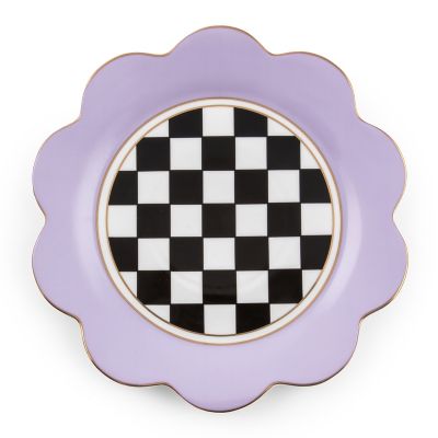 Set a table that’s always as fresh as spring with this flower-shaped, porcelain dinner plate that’s trimmed with lavender petals and gold lustre.