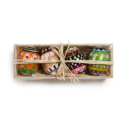 This set of four eggs are simply egg-ceptional, with unique and intricate patterns that are hand-painted on capiz shell.