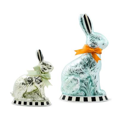 Hop into spring with a small foil bunny that’s colored in pale green. Wearing a matching bow tie, it has Courtly Stripe trim on its ears.
