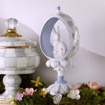 Add vintage-inspired elegance to spring with this panoramic bunny egg, featuring an ivory bunny peeking out from an open Sterling Check® egg on a sculpted base. Place it front and center on your tabletop, mantel or buffet to get it all the attention it deserves.