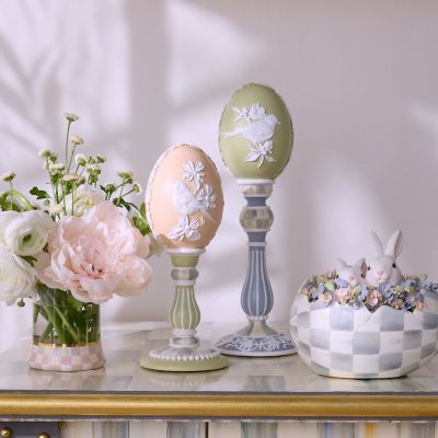 Welcome spring with this set of two eggs that are decorated with classic Wedgwood-inspired detailing and sit on pedestals accented with Sterling Check®.