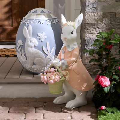 Set the scene for spring outdoors or indoors with this weather-resistant, hand-painted rabbit. It’s dressed for the Easter parade, holding a basket, and trimmed with Sterling Check® ears. It makes quite the statement, especially when displayed with the matching Mr. Rabbit.