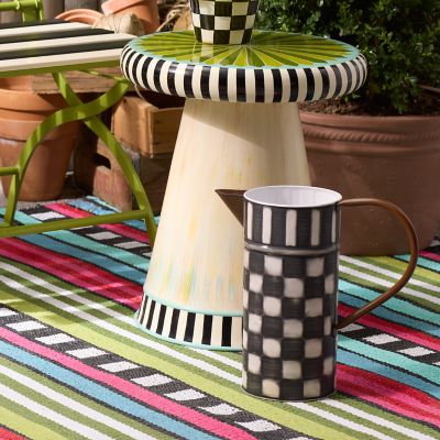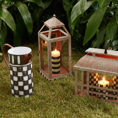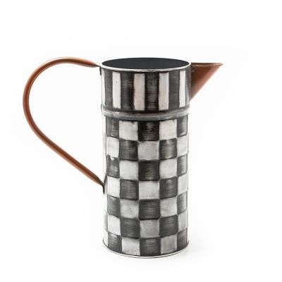 Pamper your prized petunias or your houseplants with a drink from our Check It Out Watering Can. Made of galvanized metal, it’s decorated with distressed checks and stripes and has a painted copper-finish handle and spout.