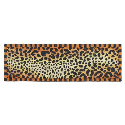 Take a walk on the wild side with this cheetah print 2’6″ x 8′ indoor/outdoor rug made of looped polyester fibers created from recycled plastic. It can be used indoors or outdoors in a shaded or covered area with limited direct exposure to sunlight.