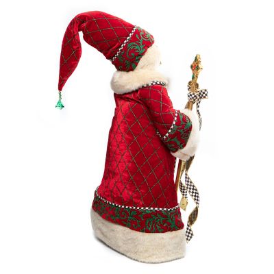 Christmas Magic Santa with Staff is a handmade delight, brimming with details from head to toe. Wearing a patterned velvety red coat, accented with faux fur, he holds a golden jeweled staff, embellished with Courtly Check® ribbon. Place this special figure in a spot near the mantel or in the entry to get all the attention it deserves.