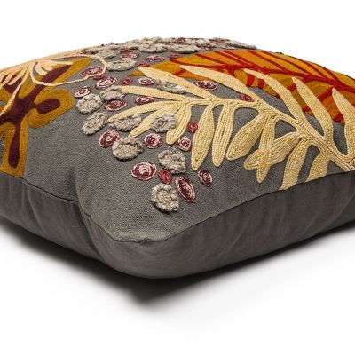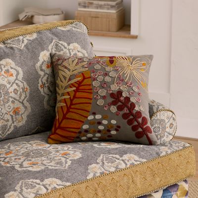 Add a touch of texture with this pillow, featuring machine-embroidered, dimensional leaves and flowers with accents of hand embroidery.
