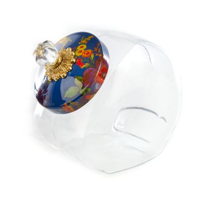 Greet friends old and new alike with a batch of warm, home-baked treats inside our Cookie Jar with Lapis Flower Market Enamel Lid. The glass body offers a preview of the tasty goodness in store, and the lid is color-glazed in deep blue and hand decorated with fanciful botanical transfers that recall a lush English garden in the peak of summer. Equally suited to hold cotton balls on the bathroom counter, clothespins in the laundry, or treats for your four-legged friends, you’ll find yourself inventing uses just to incorporate the subtle splash of garden-fresh color into every room.