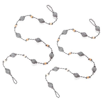 Deck the tree, the mantel, or the staircase with this farmhouse-style garland, combining wooden beads and Courtly Check® fabric balls strung on a twisted cord.