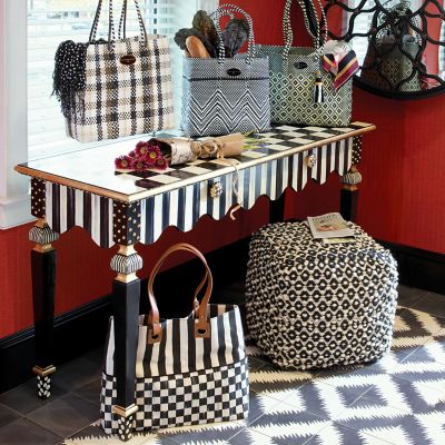 Fill this casual-chic Courtly Check® Bistro Tote to the top with fresh produce or gorgeous vegetables from the farmers’ market—it’s strong enough to get your harvest all the way home. Its 100% cotton shell is outfitted with our color-dragged black and white checks, with brass and leather accents to make it look all the more luxe.