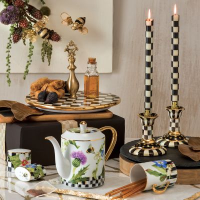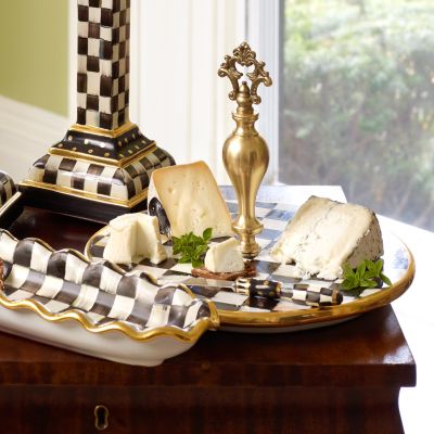 Make a memorable display of cheeses, cupcakes, cookies, and much more with our Courtly Check® Cheese Course. Featuring our signature pattern, hand-painted by our master artisans in Aurora, New York, and trimmed with gold lustre, it makes a delightful hostess or housewarming gift, too.
