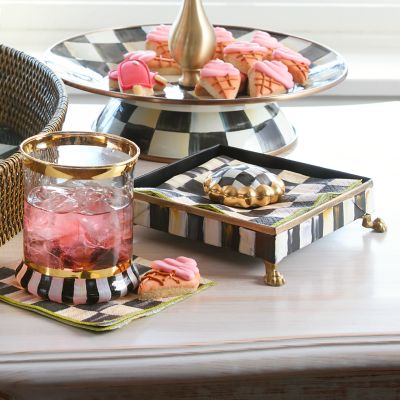 A great way to keep your napkins organized and handy. The Courtly Check® Cocktail Napkin Holder Set includes a hand-painted Courtly Stripe holder, one pack of Courtly Check® Paper Cocktail Napkins, and a ceramic Courtly Check® Round Knob.