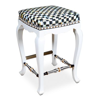 Please be seated in The Entertaining Kitchen on the White Courtly Check® Counter Stool. Crafted of domestic maple, it’s accented with black and white hand-painted spindles and a brass footrest. It’s topped with a comfortable cushion upholstered in our signature check, trimmed with checked cording and nailhead detailing. Talk about the best seat in the house!