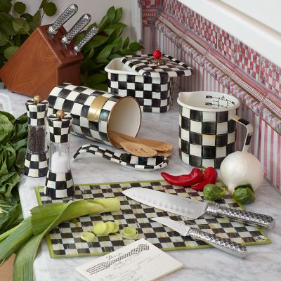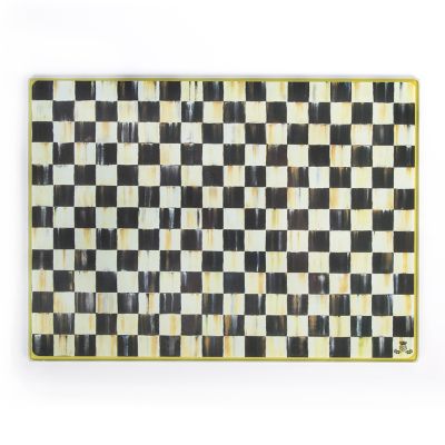 Family and friends always find their way to the kitchen—so give the heart of your home an easy update. Keep a smart, sophisticated Courtly Check® Cutting Board out for countertop beautification or to chop in style at a moment’s notice. Tempered glass with hand-applied art.