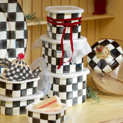 Square storage in ever-so-handy sizes, with BPA-free plastic lids to keep what’s inside fresh. (Did someone say “cookies”?) The steel underbody of our Large Courtly Check® Enamel Deep Squarage Bowl is hand-painted with color-dragged checks and rimmed in bronzed stainless steel. Please note: Bowl and lid are not microwaveable.