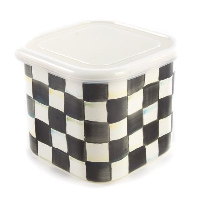 Square storage in ever-so-handy sizes, with BPA-free plastic lids to keep what’s inside fresh. (Did someone say “cookies”?) The steel underbody of our Medium Courtly Check® Enamel Deep Squarage Bowl is hand-painted with color-dragged checks and rimmed in bronzed stainless steel. Please note: Bowl and lid are not microwaveable.