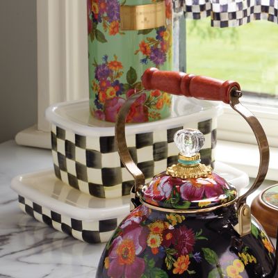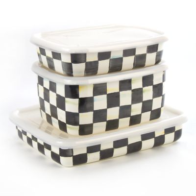 From the pantry to the closet, we’ve got a storage solution for you that’s much prettier than plastic bins. Carry cupcakes, store scrapbooking supplies, put away pasta or reserve ribbon in a Large Courtly Check® Enamel Storage container. Enameled heavy-gauge steel, hand-painted with color-dragged checks; includes BPA-free plastic lid.