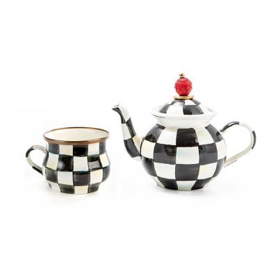 Coffee or tea for one please! Way cuter than a to-go paper cup, savor every moment of your morning ritual with this single-serve enamel Courtly Check® Tea for Me Pot and Courtly Check® Enamel Teacup. Our most popular pattern is casual and cozy, with a subtle jewel-tone palette woven through the glossy, hand-painted, high-contrast checks.