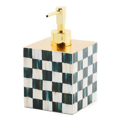 Dress up a household staple with the Courtly Check® Lacquer Soap Pump, featuring a gold leaf top with printed Courtly Check sides and finished with lacquer.