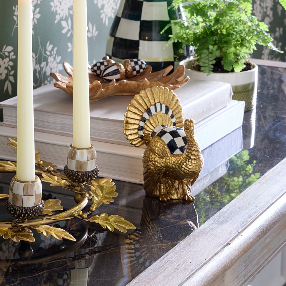 Let’s talk turkey about the shimmering Courtly Check® Mini Gold Turkey Figurine, covered in gold paint and trimmed with Courtly Check.